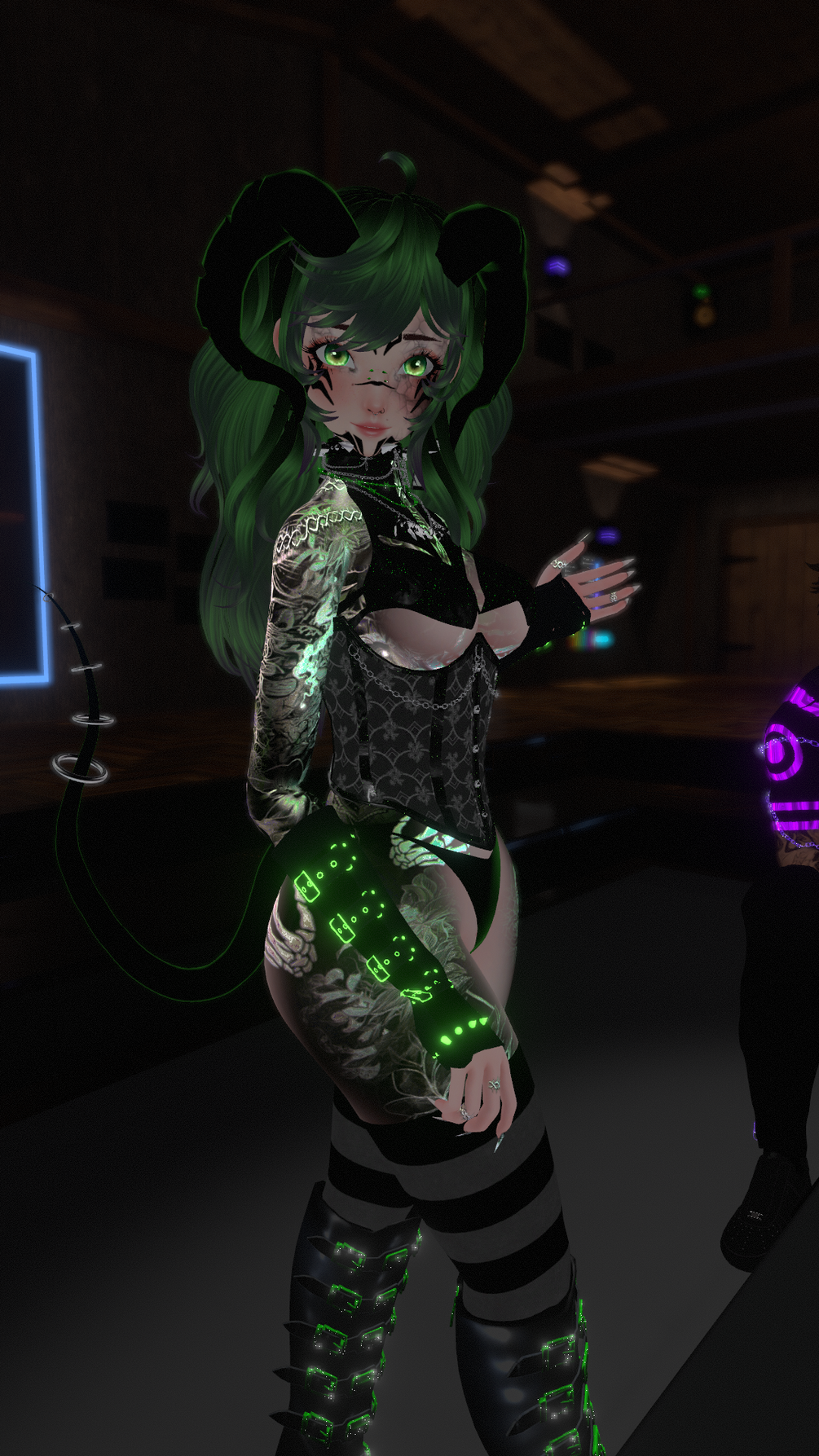 // Hair Swap // Pasties // Top // Corset // Harness // Pants // Socks // Panties // Boots // Arm Warmers // Jewlery // Piercings // Earrings // Horns // Tail //